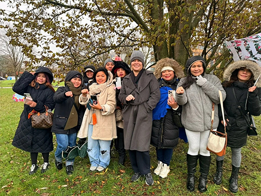 副總統薩拉·杜特地在海牙與支持其父、前總統羅德里戈·杜特地的菲律賓民眾會面(梅琳·萊裡奧斯臉書照片)