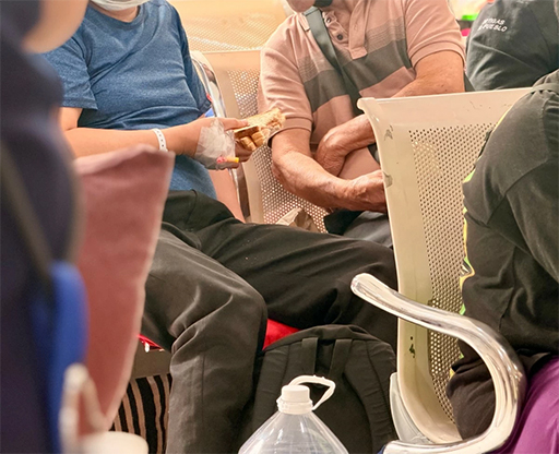 在等待治療期間,患者及其陪伴者分享由菲律賓總醫院天主教牧師團提供的三明治。